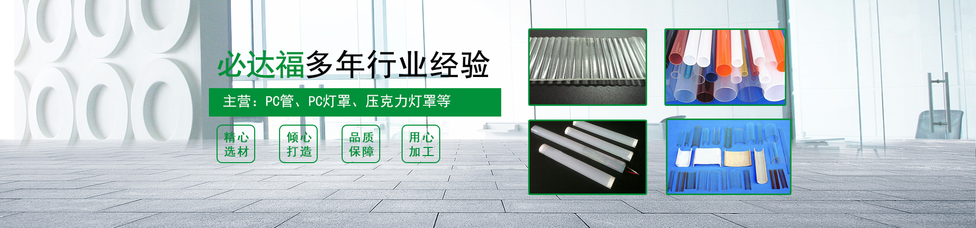 歡迎光臨常州必達(dá)福塑料型材有限公司!主營(yíng)產(chǎn)品:PC管、PC燈罩、壓克力燈罩等